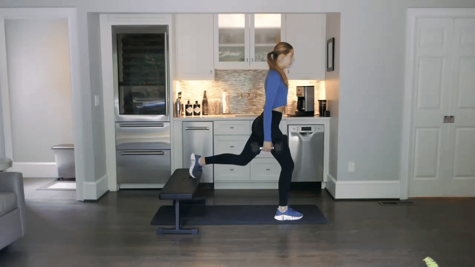 Warm-Up (5 minutes) Bodyweight Squats – 1 minute Walking Lunges – 1 minute Leg Swings (front-to-back, side-to-side) – 1 minute Glute Bridges – 1 minute Jumping Jacks – 1 minute Workout (30 minutes) Perform each exercise for 12-15 reps on each leg if needed (e.g., lunges). Complete 3 rounds with 1-2 minutes rest between rounds. Dumbbell Goblet Squat Hold a dumbbell vertically at chest height. Lower into a squat, keeping your chest up and knees tracking over your toes. Dumbbell Romanian Deadlift Hold a dumbbell in each hand, feet hip-width apart. Keeping a slight bend in your knees, hinge at your hips and lower the dumbbells down the front of your legs. Engage your glutes and hamstrings to return to standing. Dumbbell Bulgarian Split Squat Place one foot on a bench or step behind you, hold dumbbells at your sides. Lower into a lunge, keeping your chest up and weight in the front heel. Dumbbell Step-Up Hold a dumbbell in each hand and step up onto a bench or sturdy surface. Push through your front heel to bring your other foot up, then step back down. Dumbbell Sumo Squat Hold a dumbbell vertically at chest height or between your legs with a wide stance. Lower down, keeping your chest up and knees tracking over toes. Dumbbell Calf Raises Stand with a dumbbell in each hand, feet hip-width apart. Raise up onto your toes, then slowly lower back down.
